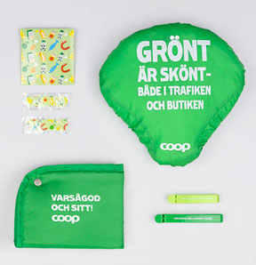 Ledorden för processen från idé till färdig produkt var familj, omtanke och miljötänk – i ett sammanhang av helhet och flexibilitet. Det resulterade i en idé om att ta fram produkter med fokus på att göra livet enklare för målgruppen men det skulle även passa bra vid sponsoraktiviteter. Funktionen på produkterna tillsammans med kommunikationen förmedlar budskapet om Coop som en omtänksam och miljömedveten butikskedja.